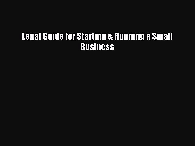 Pdf Download Legal Guide For Starting Running A Small Business By